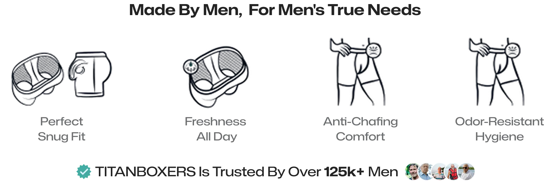 Titan Boxer™ is designed for all-day protection and comfort. Depending on your level of leakage and daily activity, most customers report up to 10–12 hours of wear before needing to change. For heavier leaks, we recommend changing once the absorbent layer feels damp.